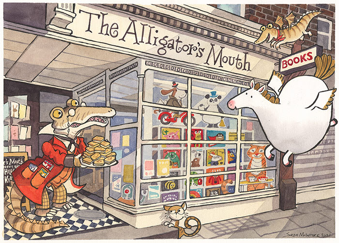 go into its mouth, only into the bookshop, which was called ‘The Alligator’s Mouth’. It was all rather confusing really, but there was a nice big plate of custard creams for him, so Kevin didn’t mind.